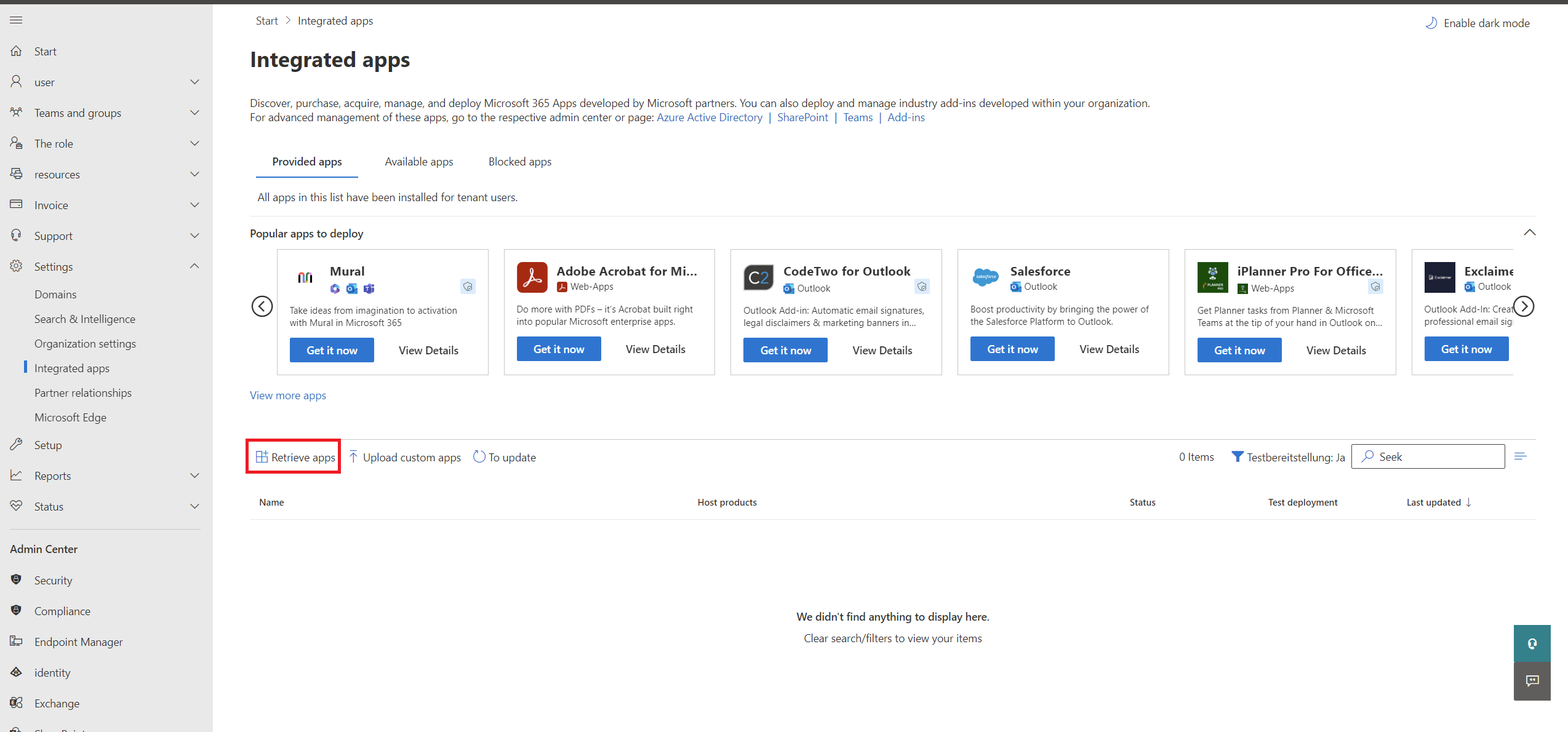 2. Navigare su Impostazioni > App integrate e selezionare Recupera app (o Get apps).